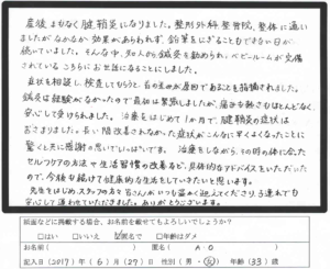 施術をはじめて1か月で腱鞘炎の症状はおさまりました。