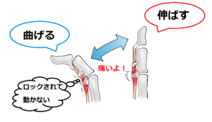 その結果、腱が腱鞘で引っかかって動きが障害されるため、指を動かしにくくなります。